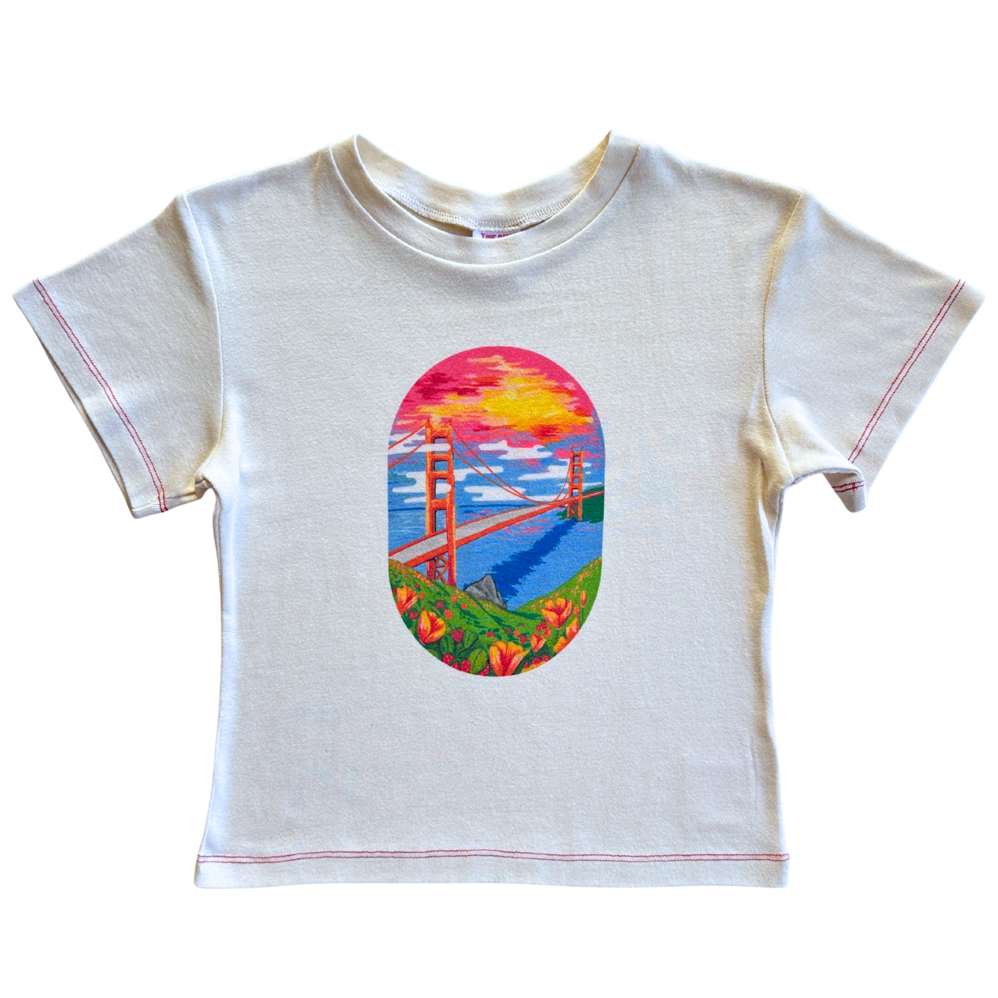 The Golden Gate like you’ve never seen it - glowing at sunset, surrounded by poppies and strawberry fields.